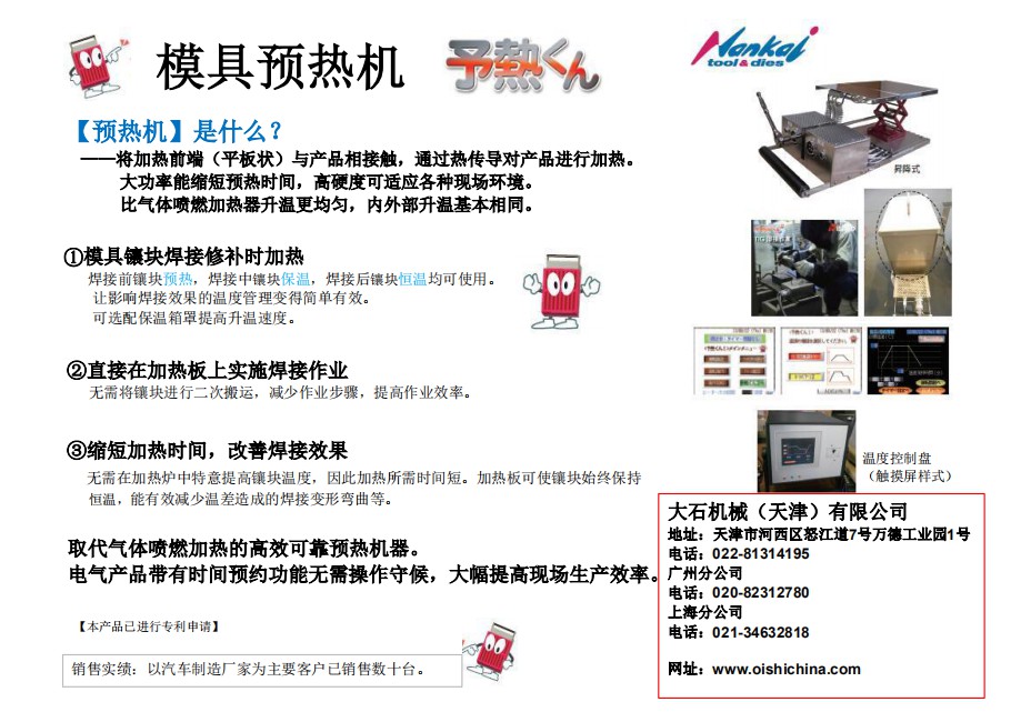郵箱:kent@oishi-machine.com大石機械(天津)有限公司是日本大石機械株式會社在中國的全資子公司。公司成立于2004年7月,并于2007年在廣州、上海、武漢成立分公司。